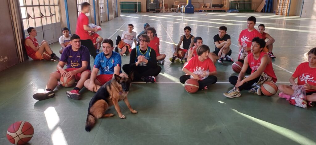 Oggi sono passati in palestra per incontrarci e consegnarci i buoni accompagnati da “Diana”, splendida amica a quattro zampe addestrata alla “Pet therapy” che è stata subito al centro dell’attenzione dei ragazzi.